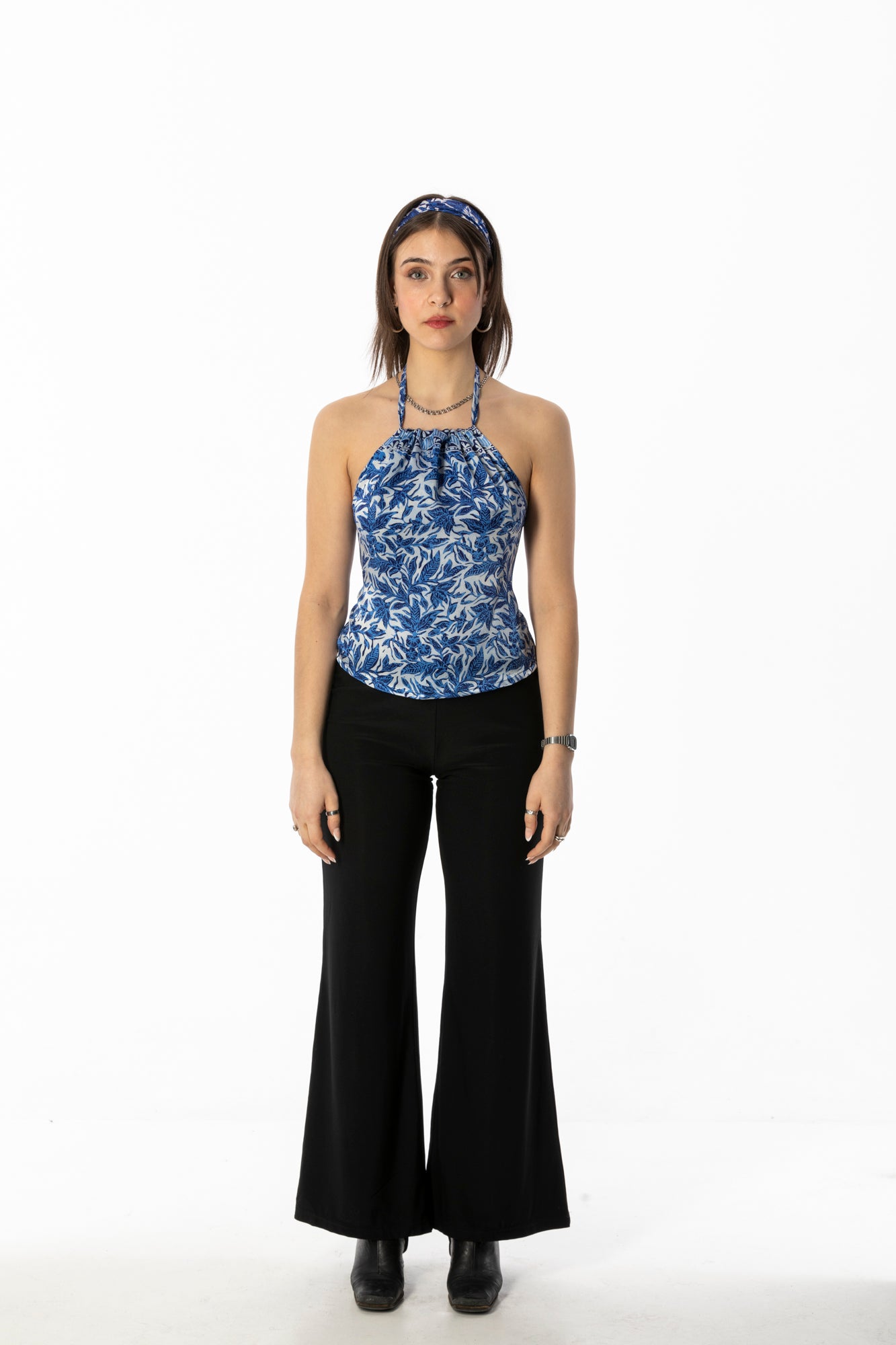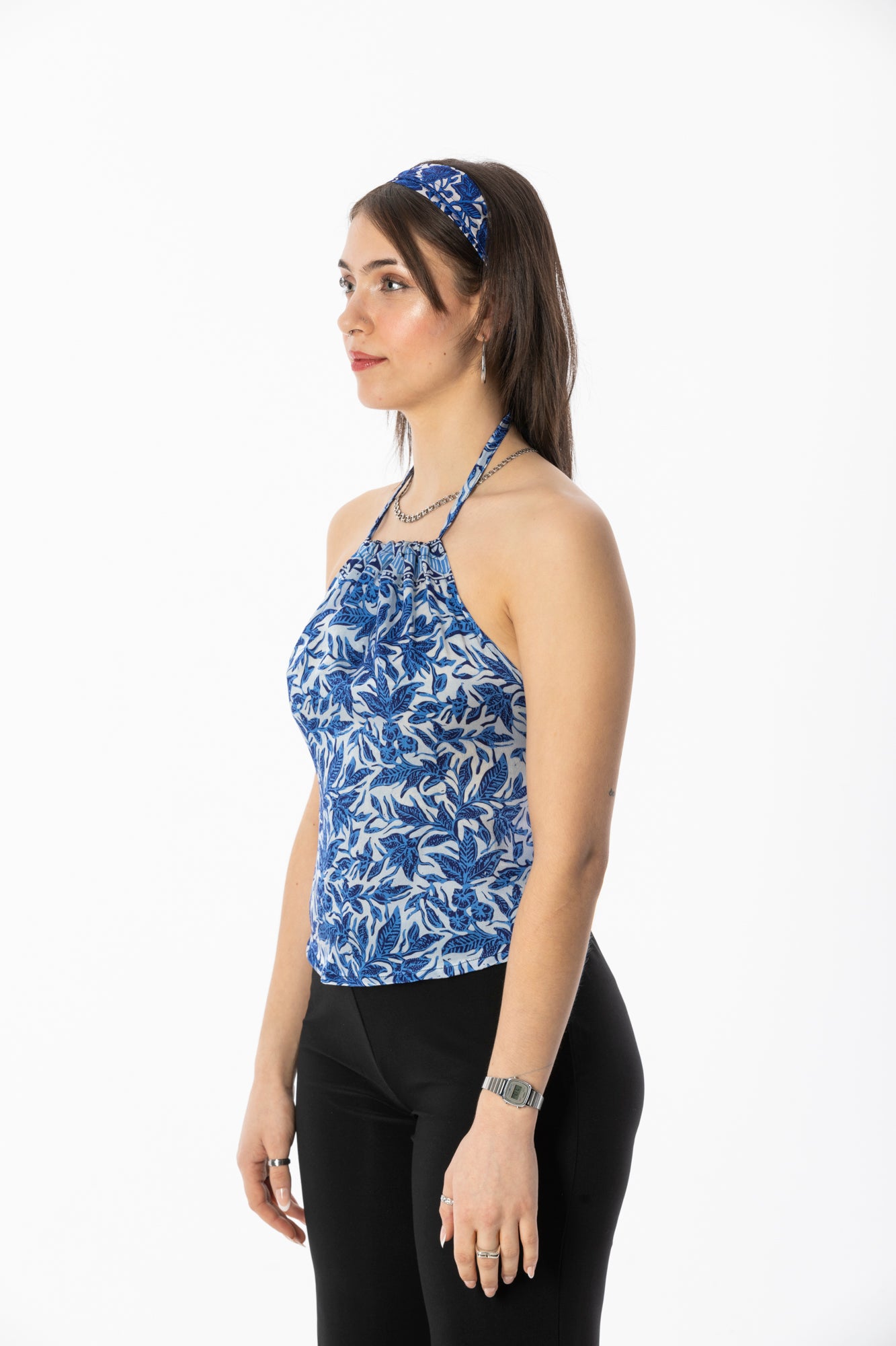 ALIR TIRTA SILK HALTER TOP & HEADBAND SET - FLORAL BLUE